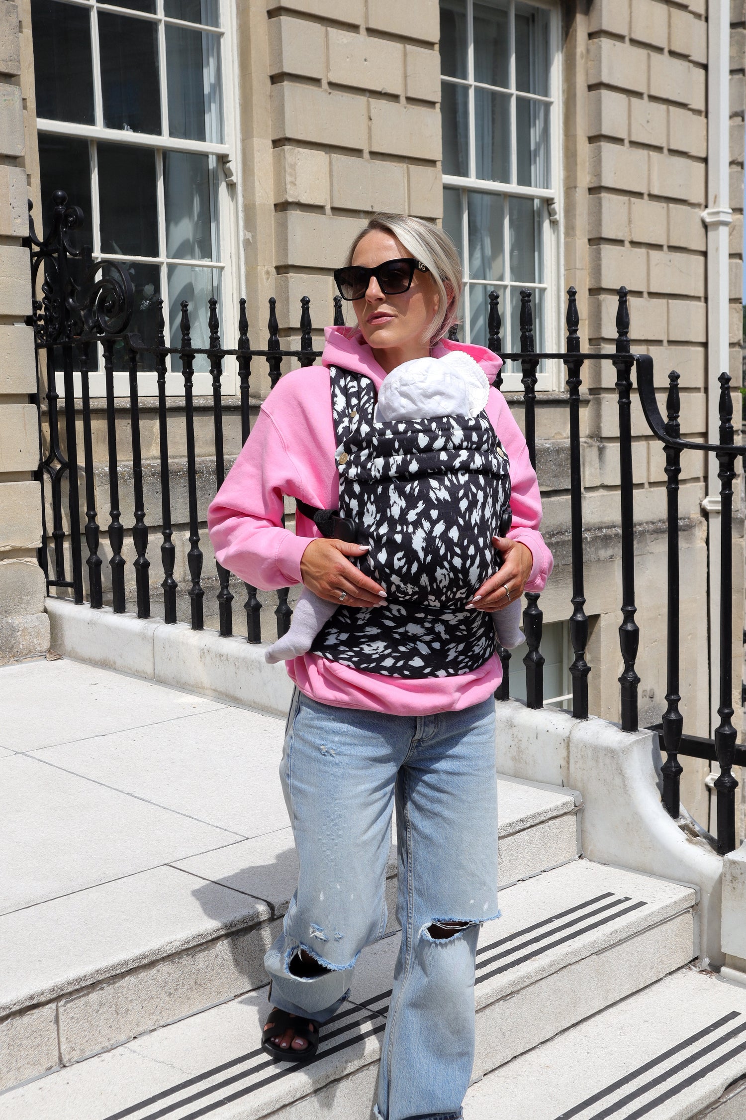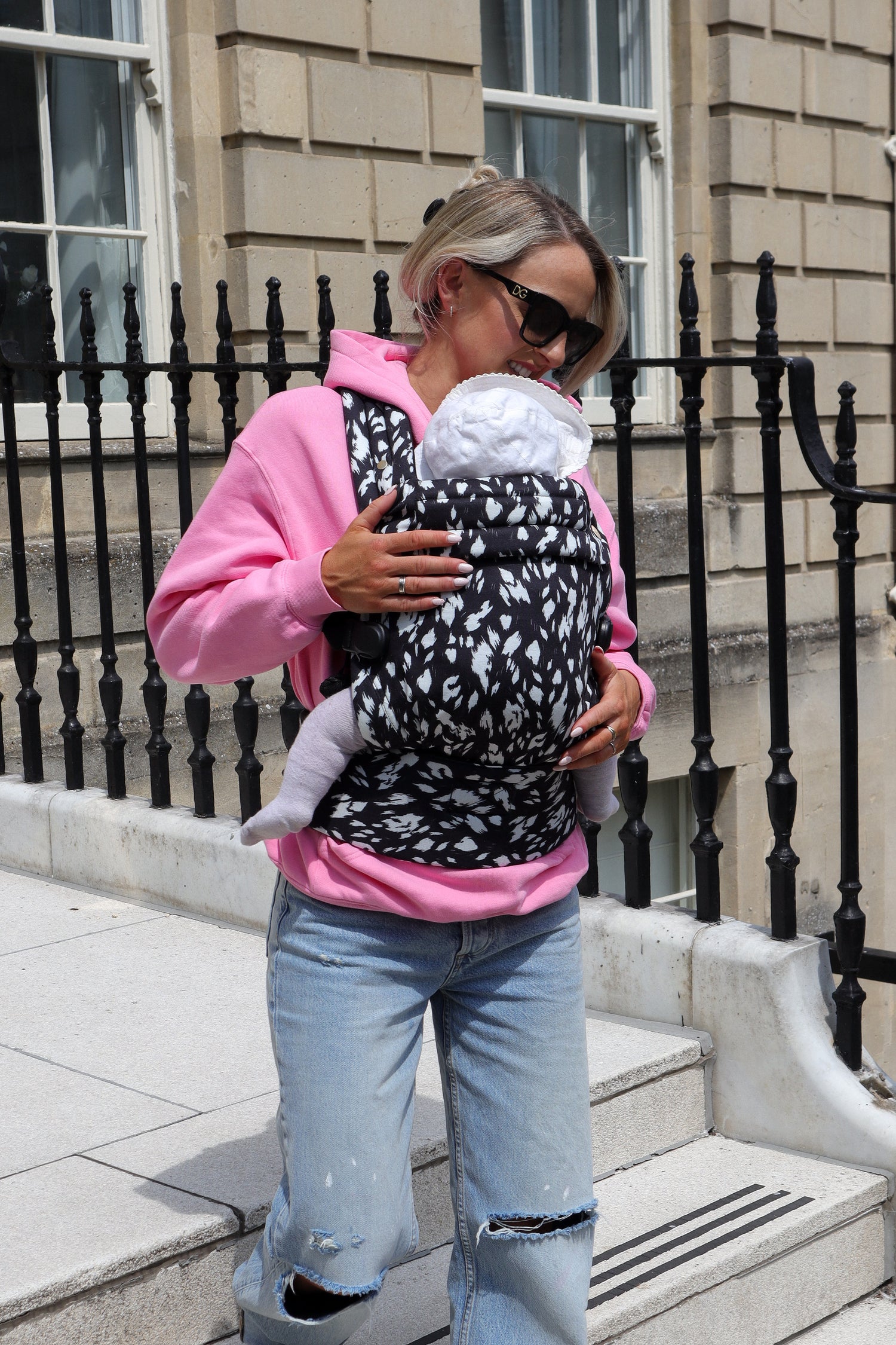 - Una mochila portabebés elegante y transpirable para uso diario