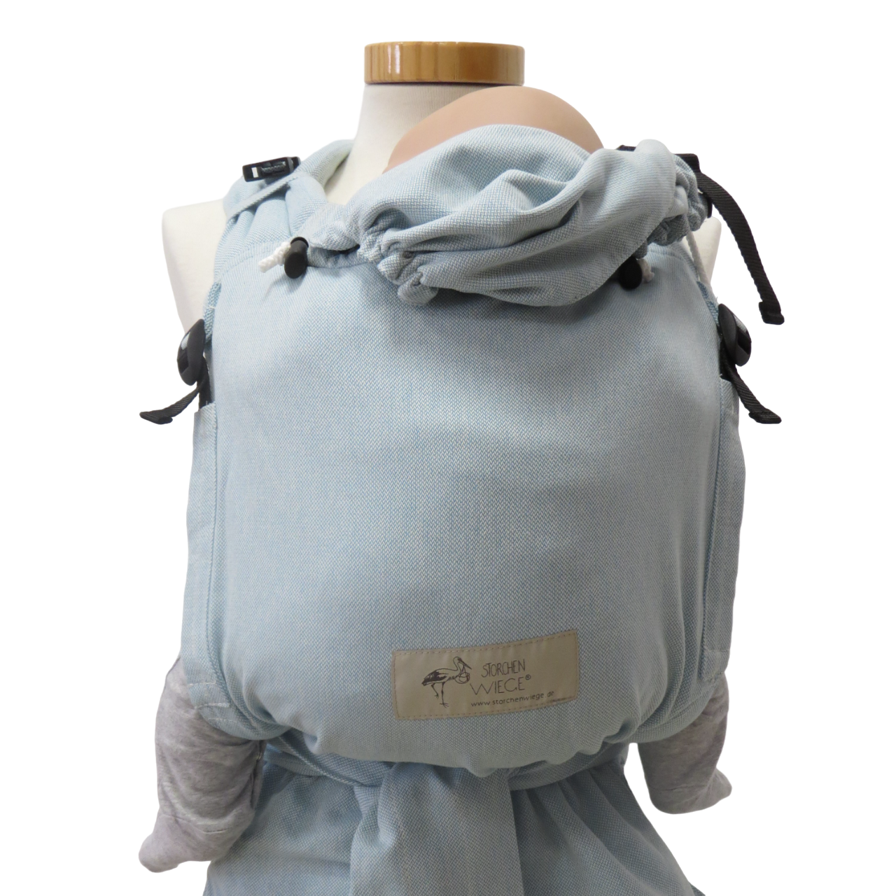 The Storchenwiege BabyCarrier is an optimally adjustable half-buckle baby carrier, meaning it combines a buckle waist belt with wrap-style shoulder straps that you tie for a custom fit. Made from the original Storchenwiege woven sling fabric, it offers the softness and adaptability of a baby wrap with the convenience of a buckle carrier. Designed for everyday use from birth (approx. 3.5 kg) up to 15 kg, it grows with your baby from newborn to toddlerhood.
